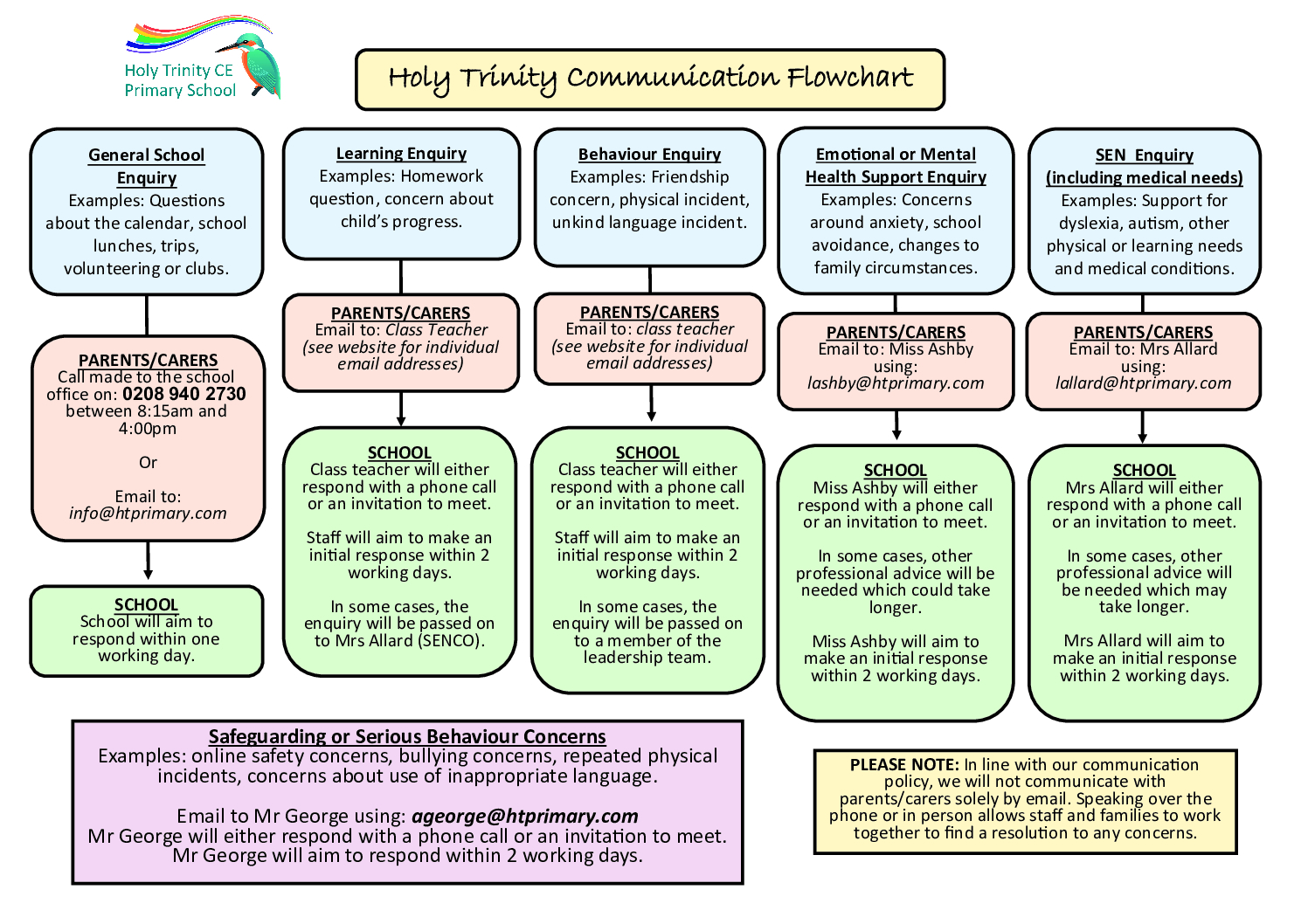 We hope that you will find this a useful resource to be able to contact the correct member of staff for the correct situation.